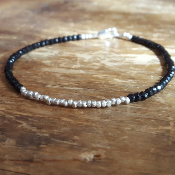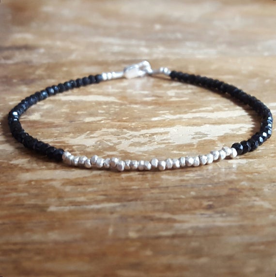 At a Great Price925 sterling silver Rock Gift 2.5mm black Black Spinel stacking Bracelet Round, faceted 18cm for mens, womens, gf, bf and adults.