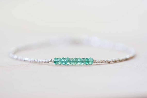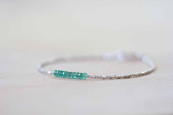 At a Great Price925 sterling silver Rock Gift 2.5mm Green Emerald stacking Bracelet Rondelle , Faceted 18cm for mens, womens, gf, bf and adults.
