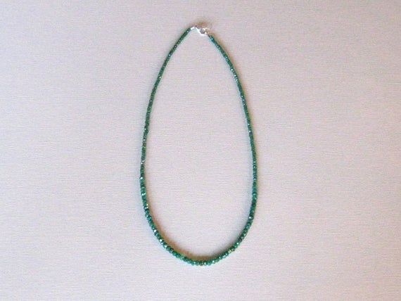 At a Great Price925 sterling Silver Rock Gift 2.5mm stacking Green Green Onyx Necklace Rondelle, Faceted 19" for mens, womens, gf, bf & Adult.
