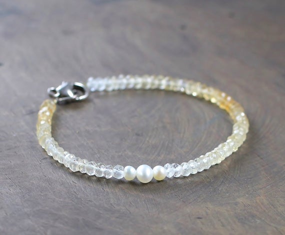 At a Great Price925 sterling silver Rock Gift 3-3.5mm Multi Colour Citrine & Freshwater Pearl stacking Bracelet Rondelle,Round, Faceted,smooth 18cm for mens, womens, gf, bf and adults.