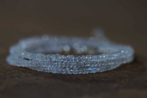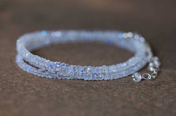 925 sterling silver Rock Gift 3-3.5mm Multi Colour Rainbow Moonstone stacking Necklace Rondelle, Faceted 16inch for mens, womens, gf, bf and adults.