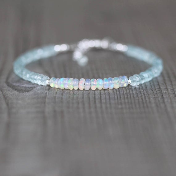 At a Great Price925 sterling Silver Rock Gift 3.5-4mm stacking White Aquamarine & Ethiopian Welo Opal Bracelet Rondelle, Faceted & Smooth 7" for mens, womens, gf, bf & Adult.