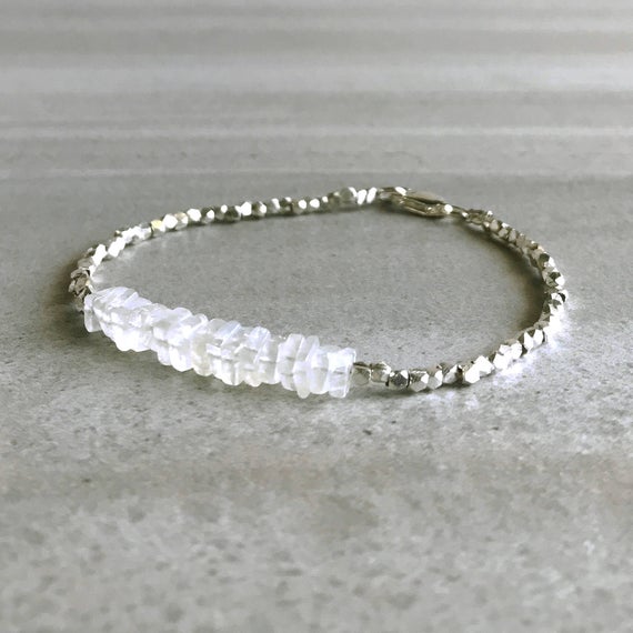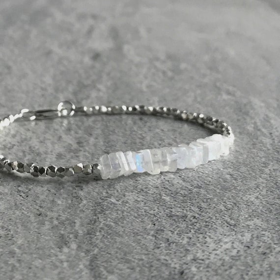 At a Great Price925 sterling silver Rock Gift 5mm White Rainbow Moonstone stacking Bracelet Square, Smooth 18cm for mens, womens, gf, bf and adults.