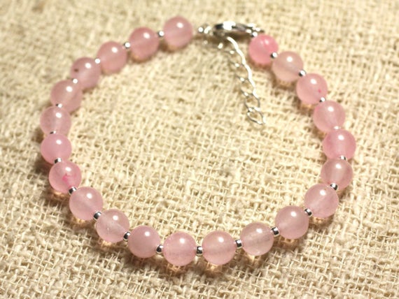 925 sterling Silver Rock Gift 6mm Stracking Pink Jade Bracelet Round, Smooth 7" for mens, womens, gf, bf & Adult.