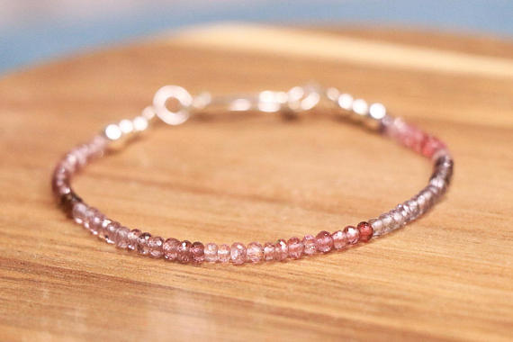 At a Great Price925 sterling Silver Rock Gift Silver Helling 3-4mm stacking Multi Spinel Bracelet Round, Faceted 7" for mens, womens, gf, bf & Adult.