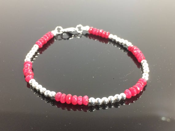 925 sterling Silver Rock Gift Silver Helling 4-5mm stacking Red Ruby Bracelet Rondelle, Faceted 7" for mens, womens, gf, bf & Adult.