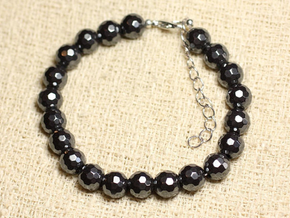 At a Great Price925 sterling Silver Super sale 8mm stacking Black Hematite Bracelet Round, Faceted 7" for mens, womens, gf, bf & Adult.
