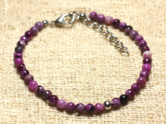 At a Great Price925 sterling Silver Super sale Silver Helling 4mm Stracking Purple Sugilite Bracelet Round, Smooth 7" for mens, womens, gf, bf & Adult.