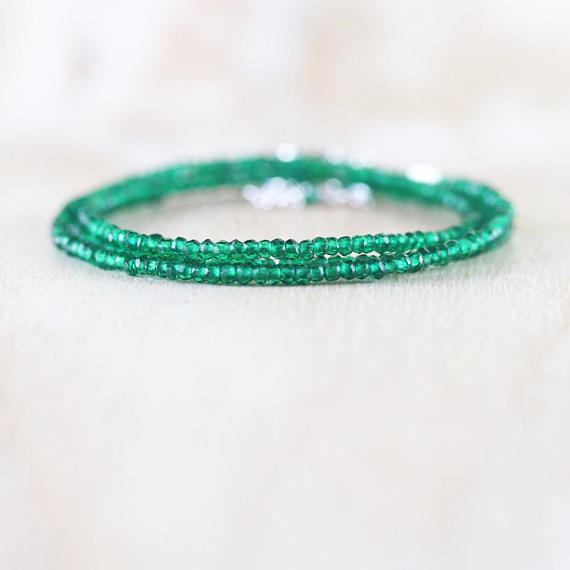 At a Great Price925 sterling Silver top quality 2-2.5mm stacking Green Chrome Green Tourmaline Necklace Round, Faceted 16" for mens, womens, gf, bf & Adult.