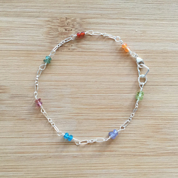 At a Great Price925 sterling Silver top quality 2mm stacking Multi Multi Color Gemstone Bracelet Rondelle, Smooth 7" for mens, womens.