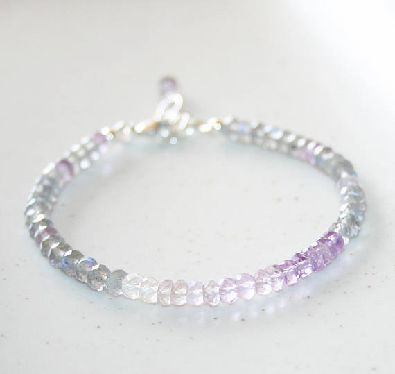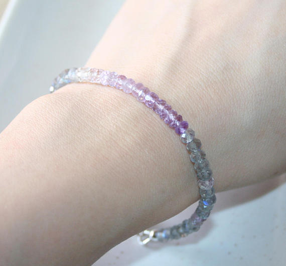 At a Great Price925 sterling Silver top quality 4-4.5mm stacking Multi Labradorite and Amethyst Bracelet Rondelle, Faceted 7" for mens, womens.