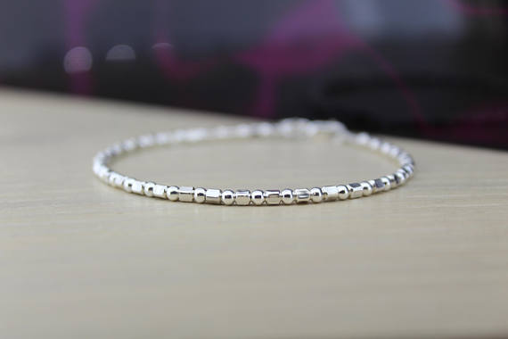 At a Great Price925 sterling Silver top quality Silver helling 2.5mm stacking Silver DAINTY Silver Bracelet Fancy, Faceted 7" for mens, womens.