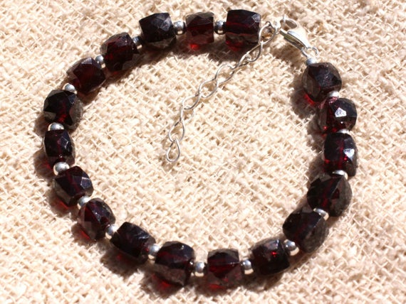 At a Great Price925 sterling Silver top quality Silver helling 6-7mm Stracking Red Garnet Bracelet Cube, Faceted 7" for mens, womens, gf, bf & Adult.