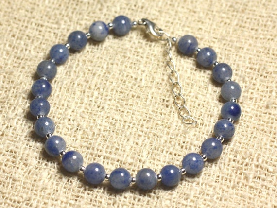 At a Great Price925 sterling Silver top quality Silver helling 6mm Stracking Blue Jasper Blue Bracelet Round, smooth 7" for mens, womens, gf, bf & Adult.