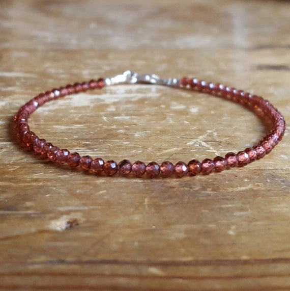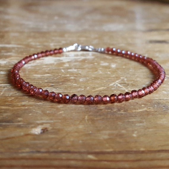 At a Great Price925 sterling silver Unique Wedding Gift 2mm Red Genuine Garnet stacking Bracelet Round, Faceted 18cm for mens, womens, gf, bf and adults.