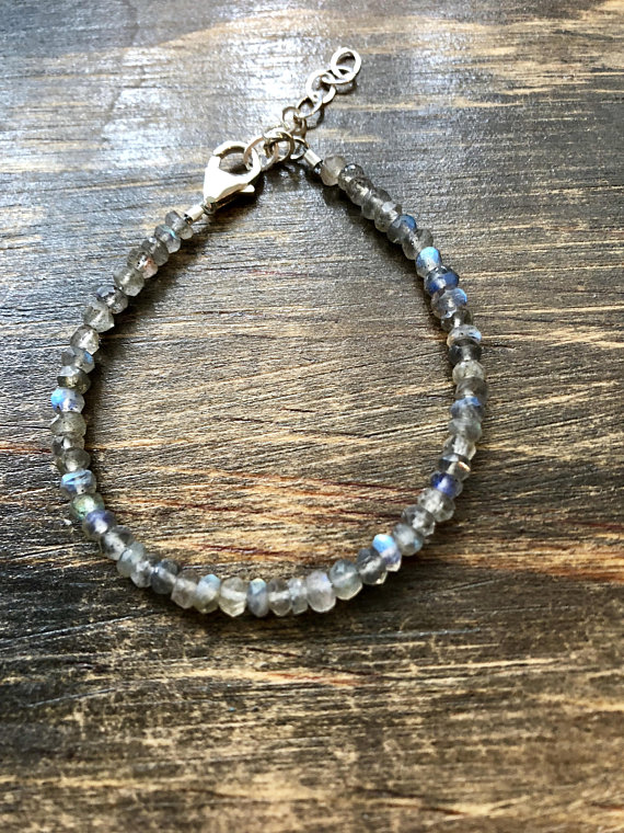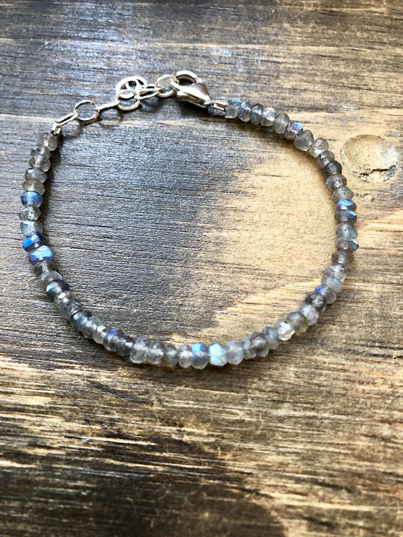 At a Great Price925 sterling Silver Unique Wedding Gift 3-4mm stacking Gray Labradorite Bracelet Rondelle, Faceted 7" for mens, womens, gf, bf & Adult.