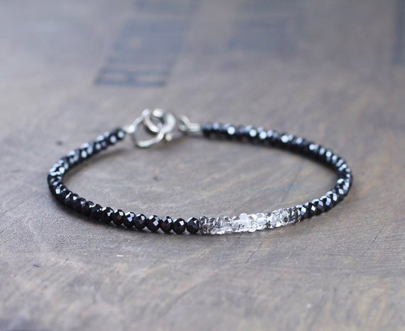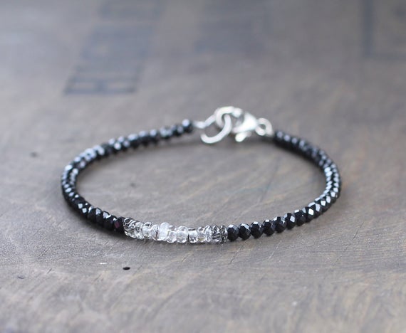 At a Great Price925 sterling silver Unique Wedding Gift 3mm Multi Colour Ombre Black Spinel & Rutilated Quartz stacking Bracelet Rondelle,Round, Faceted 18cm for mens, womens, gf, bf and adults.