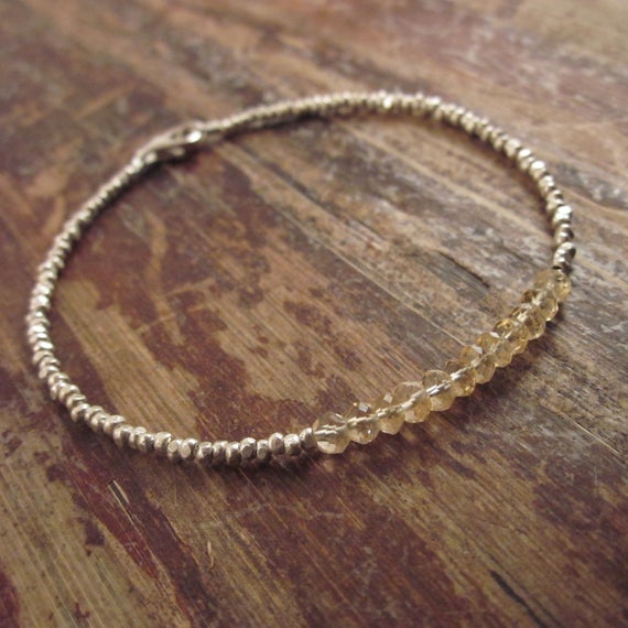 At a Great Price925 sterling silver Unique Wedding Gift 3mm Yellow Citrine stacking Bracelet Rondelle, Faceted 18cm for mens, womens, gf, bf and adults.