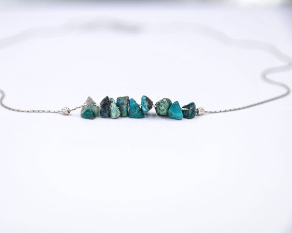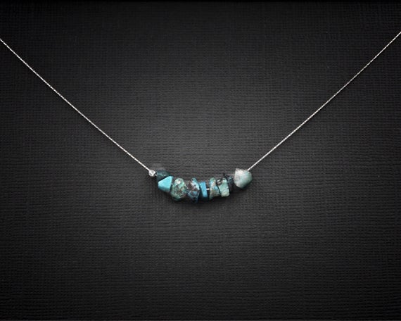 At a Great Price925 sterling Silver Unique Wedding Gift 4x6mm stacking Blue Chrysocolla Necklace Fancy, Smooth 16" for mens, womens, gf, bf & Adult.