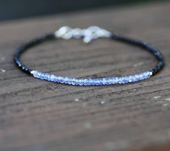 At a Great Price925 sterling Silver Unique Wedding Gift Silver Helling 2-2.5mm stacking Multi Natural Black Spinel and Tanzanite Bracelet Round & Rondelle, Faceted 7" for mens, womens, gf, bf & Adult.