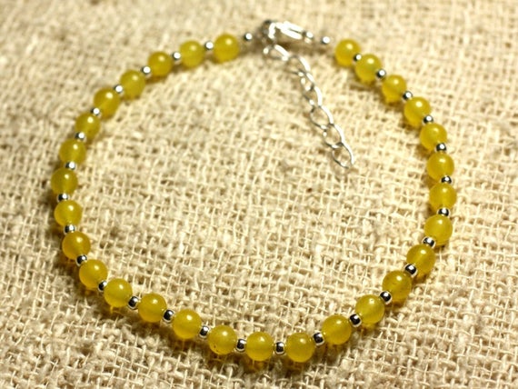 925 sterling Silver Unique Wedding Gift Silver Helling 4mm Stracking Yellow Yellow Jade Bracelet Round, Smooth 7" for mens, womens, gf, bf & Adult.