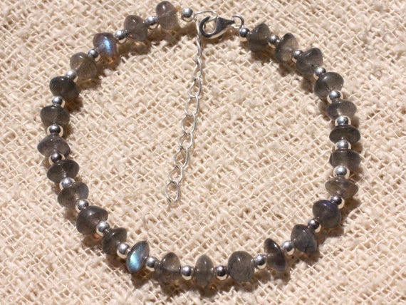 At a Great Price925 sterling Silver Unique Wedding Gift Silver Helling 6mm Stracking Gray Labradorite Bracelet Rondelle, Smooth 7" for mens, womens, gf, bf & Adult.