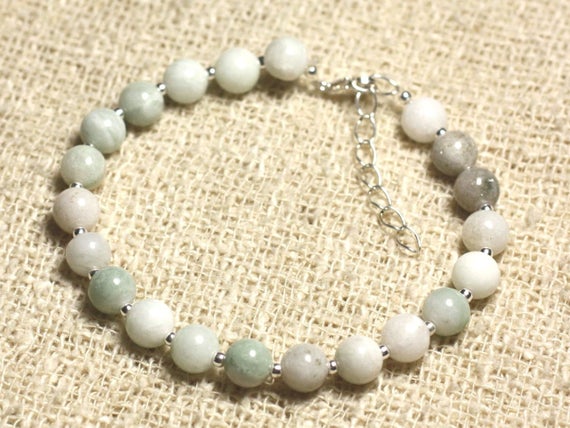 At a Great Price925 sterling Silver Unique Wedding Gift Silver Helling 6mm Stracking Multi Jade almond Green Bracelet Round, Smooth 7" for mens, womens, gf, bf & Adult.