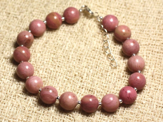 At a Great Price925 sterling Silver Unique Wedding Gift Silver Helling 8mm Stracking Pink Rhodonite Bracelet Round, Smooth 7" for mens, womens, gf, bf & Adult.