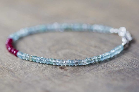 At a Great Price925 sterling silver Wholesale 3-3.5mm Multi Colour Aquamarine & Ruby stacking Bracelet Rondelle , Faceted 18cm for mens, womens, gf, bf and adults.