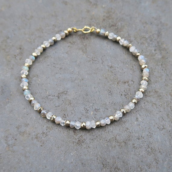 At a Great Price925 sterling Silver Wholesale 3-4mm stacking Gray Moonstone & Labradorite & Pyrite Bracelet Rondelle, Faceted 7" for mens, womens.