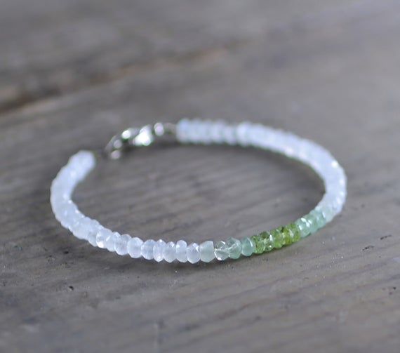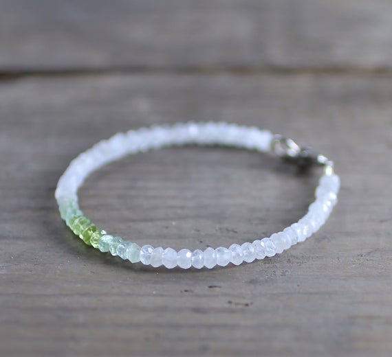 At a Great Price925 sterling silver Wholesale 3.5mm Multi Colour Moonstone, Prehnite & Peridot stacking Bracelet Rondelle, Faceted 18cm for mens, womens, gf, bf and adults.
