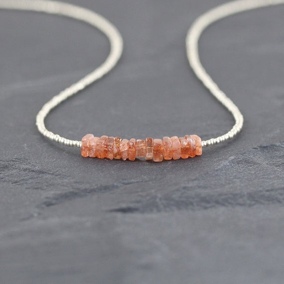 At a Great Price925 sterling Silver Wholesale 4-5mm stacking Orange Sunstone Heishi & Czech Seed Necklace Square, Smooth 16" for mens, womens, gf, bf & Adult.