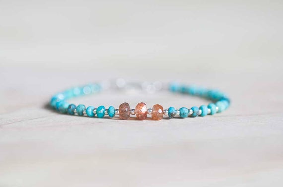 At a Great Price925 sterling silver Wholesale 4mm Multi Colour Turquoise & Sunstone stacking Bracelet Rondelle , Faceted 18cm for mens, womens, gf, bf and adults.