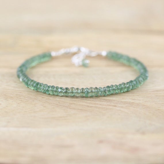 925 sterling Silver Wholesale 4mm stacking Green Green Apatite Bracelet Rondelle, Faceted 7" for mens, womens, gf, bf & Adult.