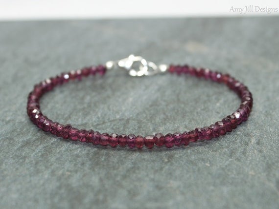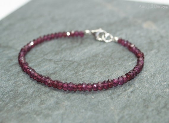 At a Great Price925 sterling Silver Wholesale 4mm stacking Red Rhodolite Garnet Bracelet Rondelle, Faceted 7" for mens, womens, gf, bf & Adult.