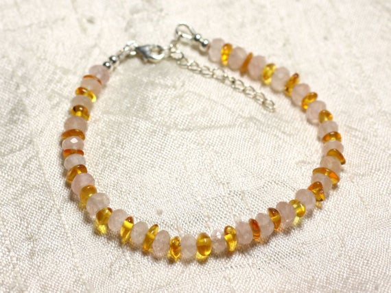 At a Great Price925 sterling Silver Wholesale 5-6mm Stracking Pink & Yellow Rose Quartz and Amber Bracelet Rondelle, Faceted & Smooth 7" for mens, womens, gf, bf & Adult.