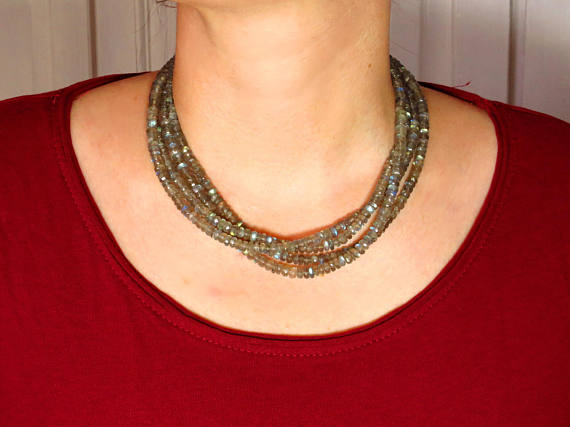 925 sterling Silver Wholesale helling 5.5mm stacking Blue BLUE FIRE labradorite Necklace Rondelle, Faceted 17" for mens, womens.