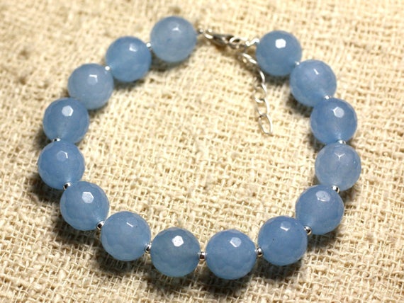 At a Great Price925 sterling Silver Wholesale Silver helling 10mm Stracking Blue blue Jade Bracelet Round, Faceted 7.5" for mens, womens, gf, bf & Adult.