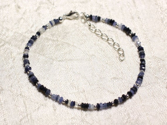 At a Great Price925 sterling Silver Wholesale Silver helling 3mm Stracking Blue & White Sapphire Bracelet Rondelle, Faceted 7" for mens, womens, gf, bf & Adult.