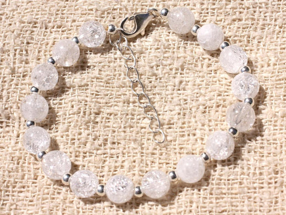 At a Great Price925 sterling Silver Wholesale Silver helling 7mm Stracking Clear clear Crackle Quartz Bracelet Round, Smooth 7" for mens, womens, gf, bf & Adult.