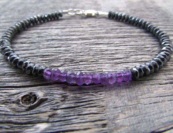 At a Great PriceAAA++ Rare Quality Amethyst Bracelet, Amethyst Bead Bracelet, February Birthstone Bracelet, Hematite Bracelet, Bead Stack Bracelet, Gifts For Women, Gifts 3.5-4mm 7" Strand. Code- TJH368