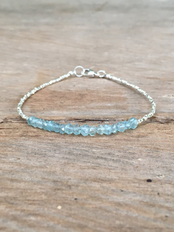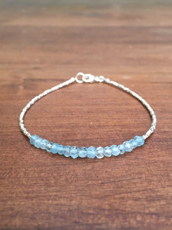 At a Great PriceAAA++ Rare Quality Aqua Blue Aquamarine and Karen Hill Tribe Silver Plated Bracelet , Beaded bracelet, Gemstone bracelet, March Birthstone bracelet 2.5 mm Code- TJH30