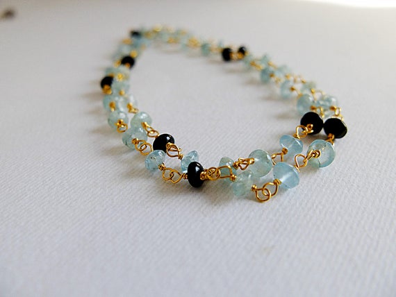 At a Great PriceAAA++ Rare Quality Beautiful Aquamarine necklace,rosary style Gold filled necklace,Aquamarine smooth pebbles,black tourmaline beads and aquamarine necklace 4-5 mm Code- TJH133