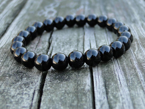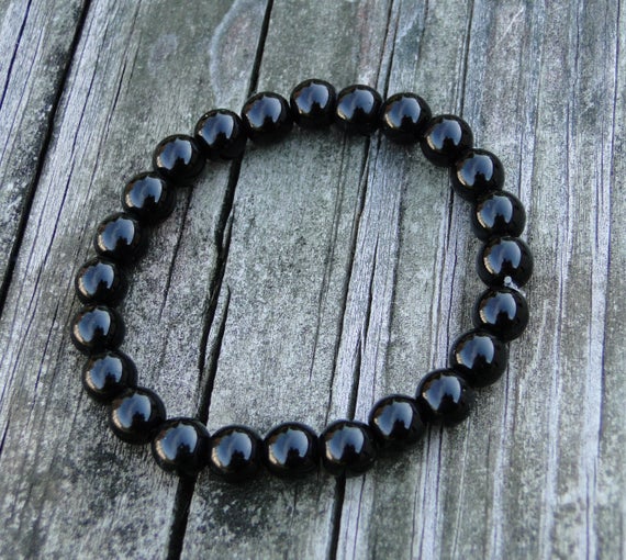 AAA++ Rare Quality Black Jasper Gemstone Bracelet | Blackstone | Black Jewelry | Mens Bracelet | Womens Bracelet | Quartz Bracelet | Healing Bracelet 8mm 7" Strand. Code- TJH306