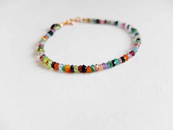 At a Great PriceAAA++ Rare Quality Clearance jewels! Iolite,pink Tourmaline Peridot,Apatite,Labradorite multicolor bracelet stacking bracelet,boho colorful bracelet, gemstone 1-2mm Code- TJH224