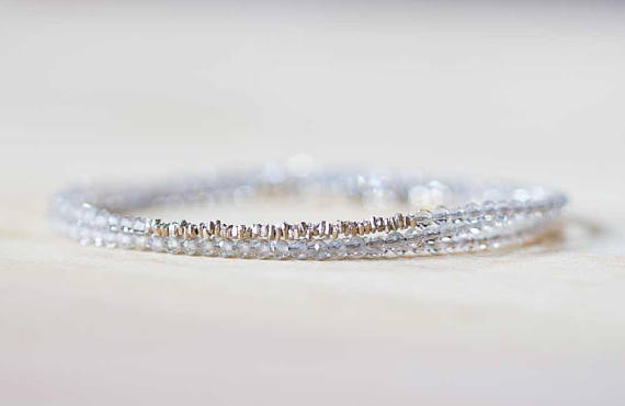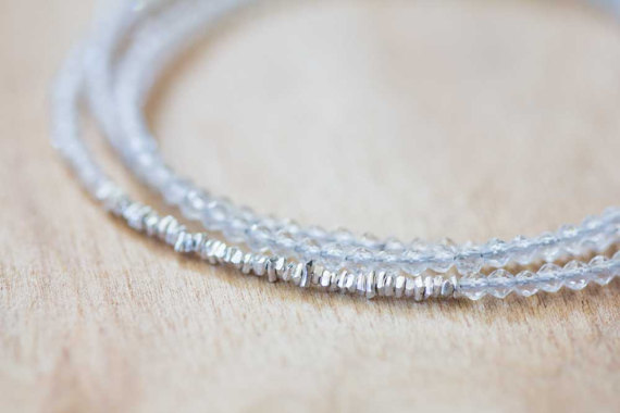 At a Great PriceAAA++ Rare Quality Crystal Quartz Bracelet with Fine Silver Platedor Rose Gold Vermeil, Delicate Triple Wrap Bracelet, Clear Quartz Jewelry 2.5mm 20 inches Code- TJH494