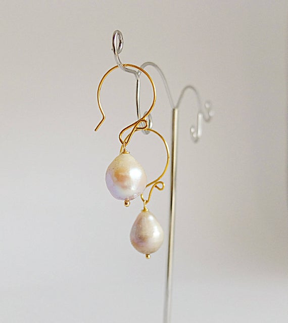 At a Great PriceAAA++ Rare Quality Dangle,baroque mauve pearl earrings Gold filled hoop hook earrings,mauve baroque large pearl earrings, large baroque pearl earrings 1.5cm Code- TJH227