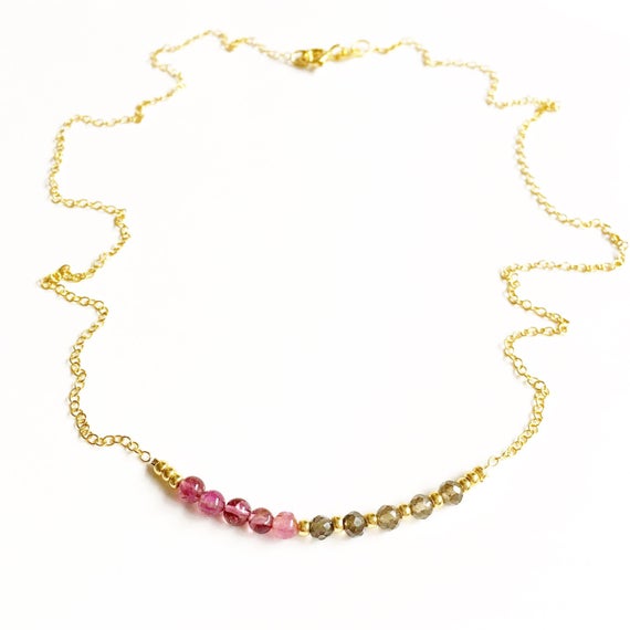 At a Great PriceAAA++ Rare Quality Floating Tourmaline and Smokey Quartz Gold Vermeil Gemstone Necklace //Tourmaline necklace //bridesmaid gifts //gifts for women //handmade 3mm 16" Strand. Code- TJH293