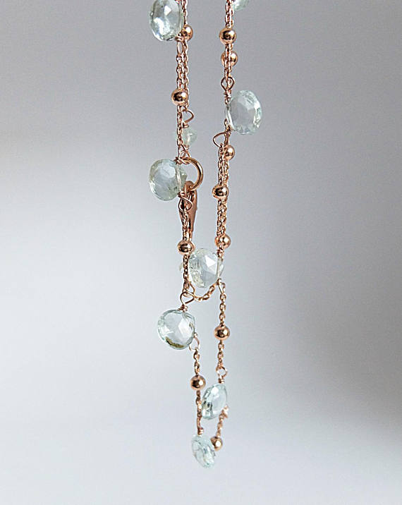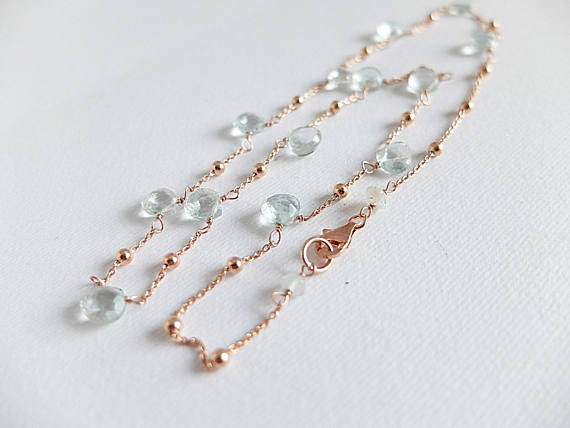 AAA++ Rare Quality Gemstone Necklace,Aquamarine necklace,pale blue necklace,rose Gold filled necklace,handwrapped necklace heart shaped aquamarine gemstone 8 mm Code- TJH185