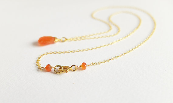 AAA++ Rare Quality Gold Filled Carnelian Necklace Gold filled minimal Carnelian Gemstone necklace,Carnelian teardrop Necklace Dainty Necklace Petite Necklace 12 mm x 7 mm Code- TJH243